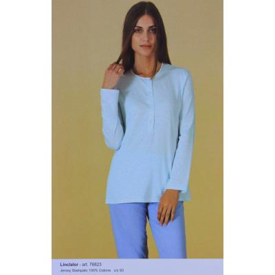 Pigiama a manica lunga.Marca LINCLALOR.Tessuto in maglina di puro cotone morbido e leggero.Giacca a serafino con quattro bottoni.Pantalone tinta unita e giacca fantasia.Particolari molto curati e materiali di grande qualità come tutti i prodotti Linclalor.