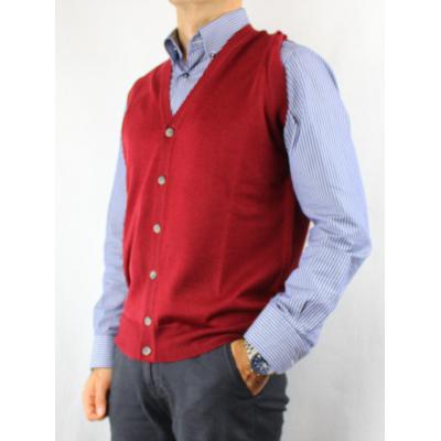 .GILET UOMO APERTO 80% LANA.MADE IN ITALY.BOTTONI (2XL - BORDO)