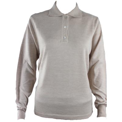 Women's polo shirt merino wool with three-button neckline, the mesh is solid in a solid middle yarn so that it can be worn alone or in place of a blouse under another heavy or heavy shirt,