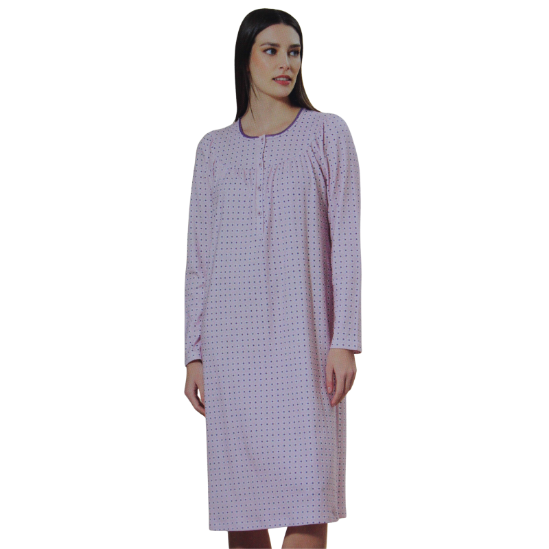 Camicia da notte di cotone invernale con collo a serafino 4 bottoni, doppio sprone anteriore e posteriore e manica raglan che conferiscono un'ottima vestibilià ed ampiezza anche nelle taglie più forti,