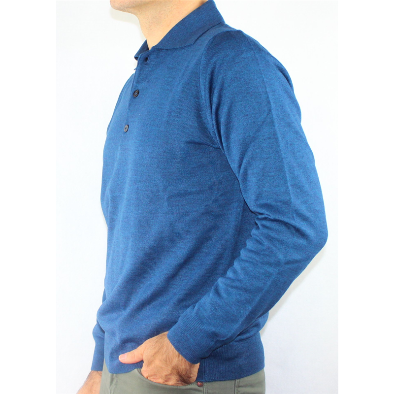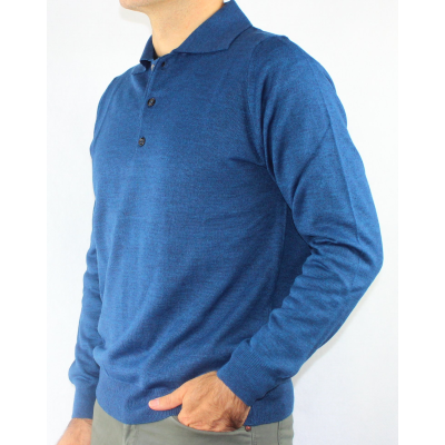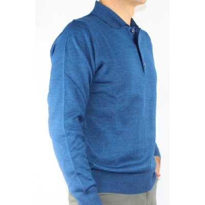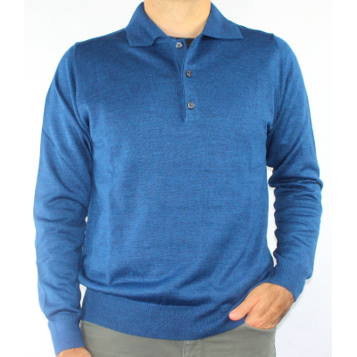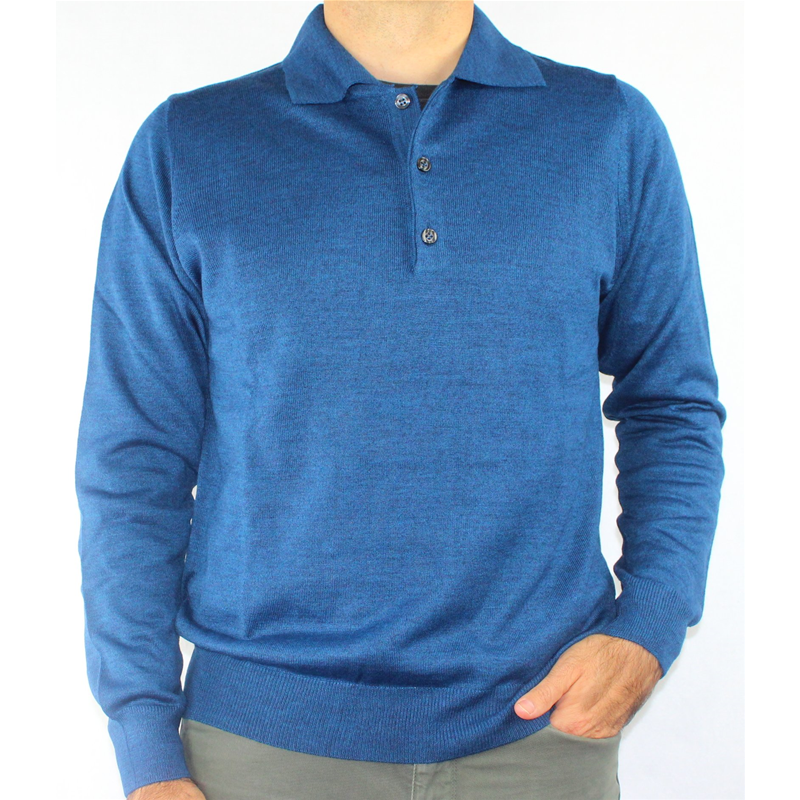 Maglia uomo in lana merinos con colletto a polo 3 bottoni.
