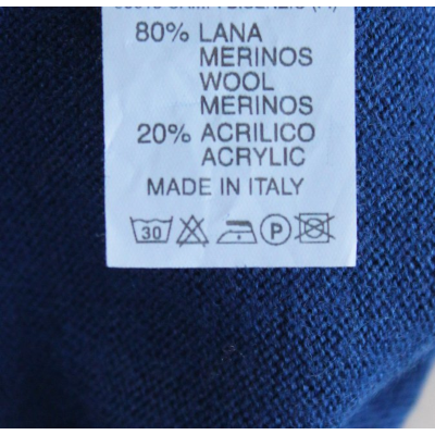 É un filato a maglia rasata di consistenza medio fine la cui composizione è 80% lana merinos e 20% acrilico,questa composizione conferisce al capo caratteristiche di morbidezza,termoregolazione e leggerezza in tutto simili a quelle della pura lana ma con maggiore resistenza e robustezza in fase di lavaggio.