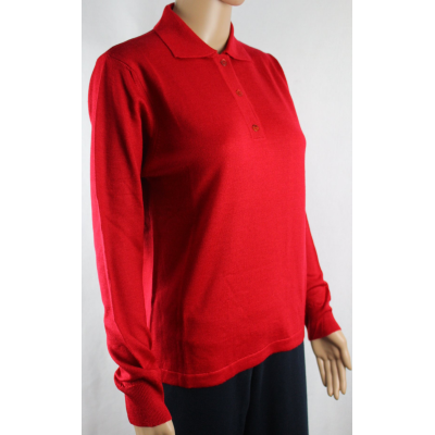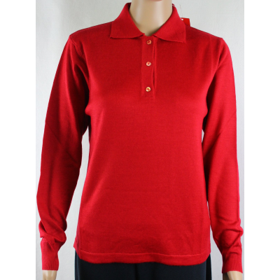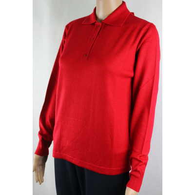 .MAGLIA POLO DONNA 3 BOTTONI.LANA MERINOS 80% MADE IN ITALY S-M-L-XL-XXL ROSSO (L)