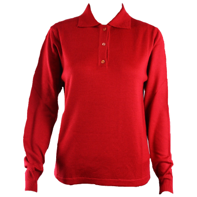 Maglia da donna in lana merinos a polo con collo a tre bottoni ,la maglia è liscia in tinta unita di un filato medio fino che consente di indossarla da sola oppure al posto di una camicetta sotto ad un altra maglia di pari pesantezza o più grave,