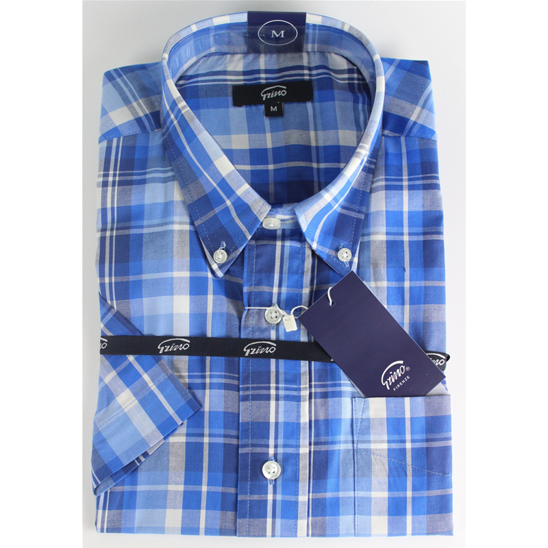 CAMICIA UOMO IN PURO COTONE MANICA CORTA TG.M-3XL QUADRI TASCHINO