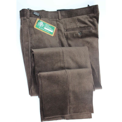 Pantalone da uomo in velluto a coste larghe (500 righe) elasticizzato in lunghezza Duca Visconti di Modrone modello con una pence, vestibilità comoda drop 4 nelle misure pari dalla 46 alla 62 e drop 0 nelle misure calibrate dispari dalla 59 alla 75. Questo tessuto elasticizzato in lunghezza veramente di grande qualità insieme alle fodere interne sulle gambe fino alle ginocchia conferisce al pantalone la caratteristica di essere indeformabile da quelle antiestetiche "borse" che generalmente si formano nel velluto non elasticizzato in corrispondenza delle ginocchia dopo che si è stati seduti anche solo dopo poche volte che si sono indossatii.